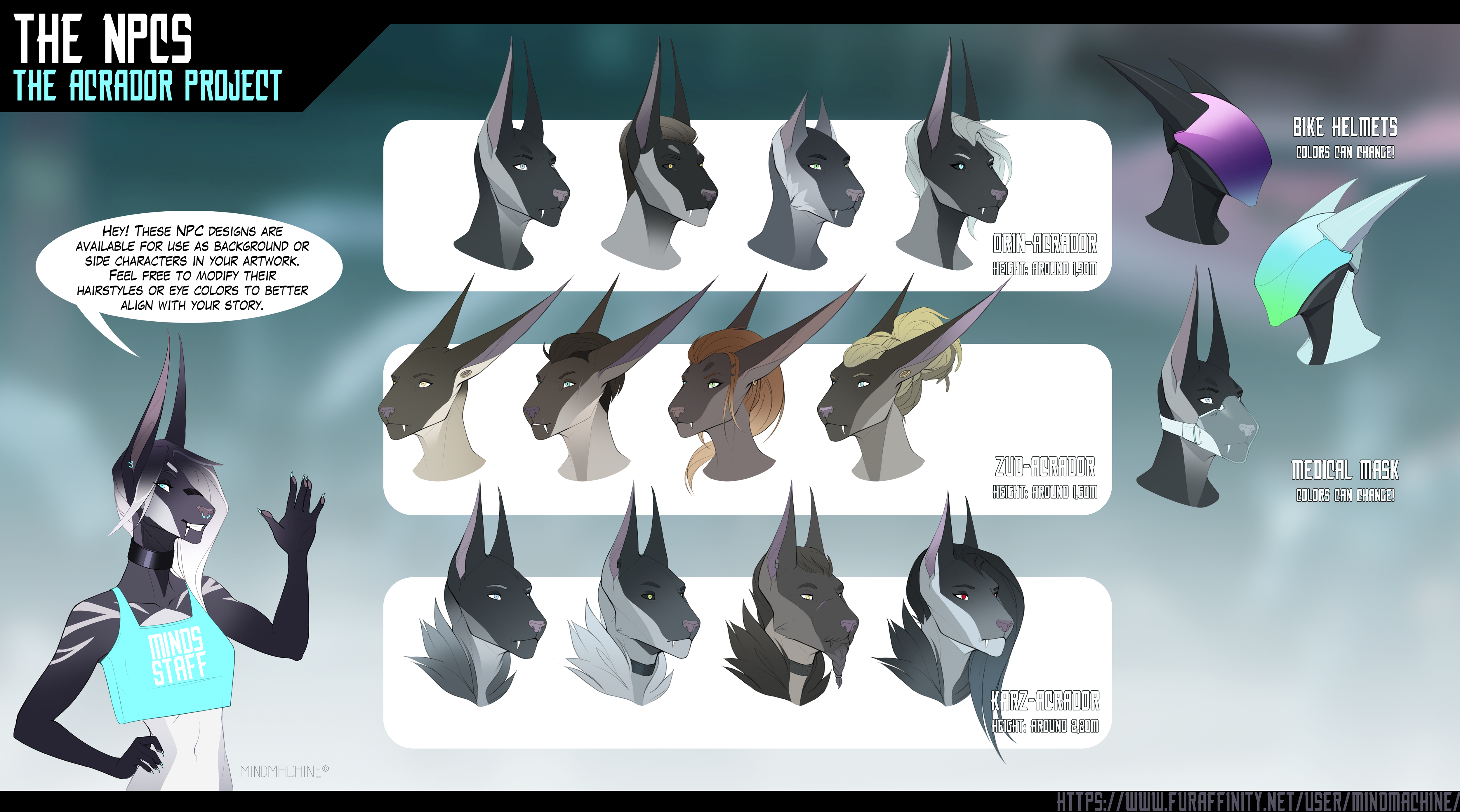 У акрадоров есть шерсть, но она очень короткая. Для референса, автор расы предлагает использовать мех лошадей (не гриву, а именно мех, который идёт по всему телу).