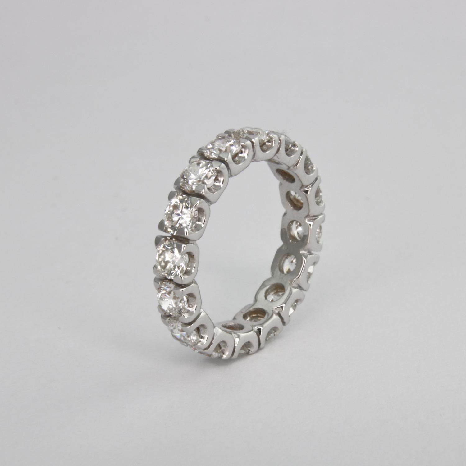 Un anello eternity, tempestato di diamanti certificati lungo tutto il perimetro della fascia, rappresenta l'amore e la fedeltà senza fine. Tradizionalmente regalato in occasione di anniversari o della nascita di un bambino, è più di un semplice regalo: è una dichiarazioned’amore.