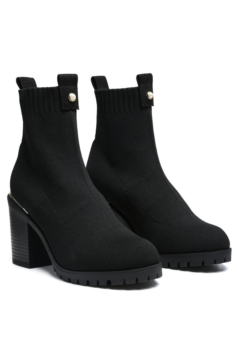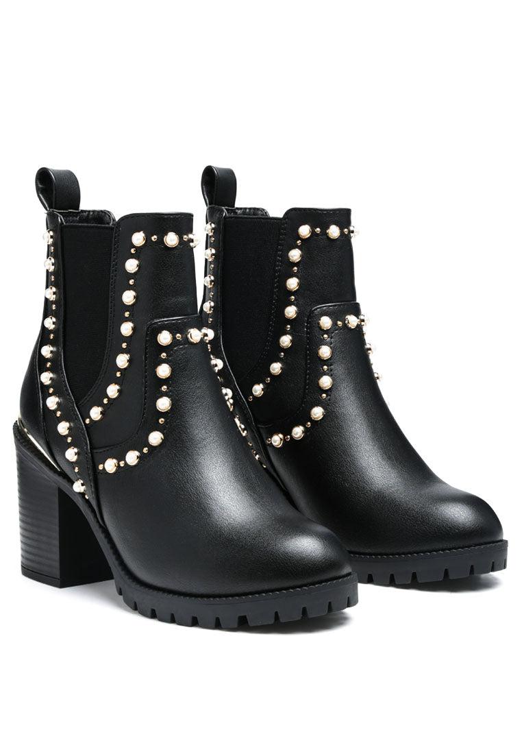 Pearl Lined Block Heeled Chelsea Boot. The stylish shoe is a suitable autumn wear style.