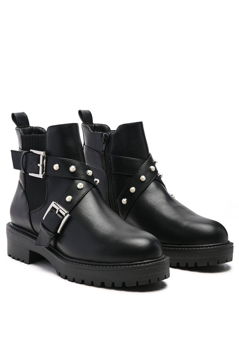 Absolutely kicking - for all your plans. Studded ankle boot comes inside zipper opening which makes it easy to wear.