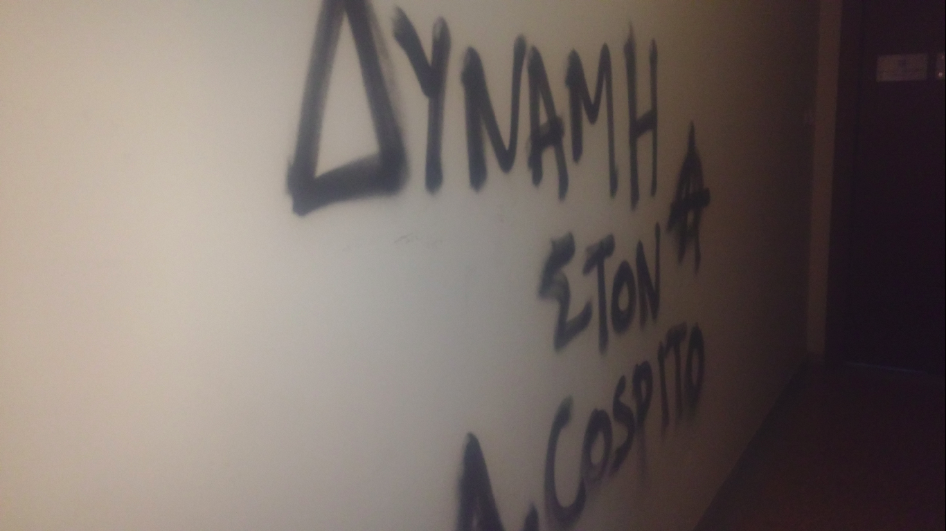 On Wednesday 30/11, one day before the court session that will decide whether to prolong the torture of our comrade in 41bis and in the context of the day of action in solidarity with the hunger striker Alfredo Cospito, we visited the Greek-Italian Chamber of Commerce at 102 Solonos Street, where we painted slogans, threw paint and left flyers, wanting to send an internationalist message of resistance to the attempted extermination of our comrade by the Italian state.