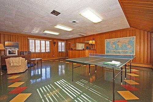 Maroon Hard Linoleum tiles glow in the fluorescent