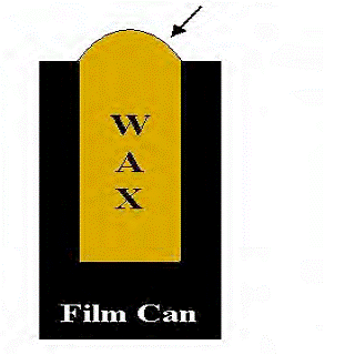 15- قم، بسرعة وبحذر، بإقفال فوهة الأسطوانة بغطاءها واضغط برفق على الغطاء ليثبت في مكانه. كنتيجة لذلك سترى أن بقية من الشمع بدأت تبرز من الثقب.