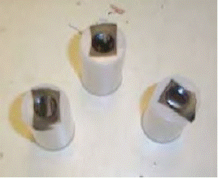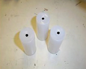 8- بعد أن تثبت المحركات في الأسطوانات الثلاث، نكمل العمل بإضافة الشمع المذاب حتى تتملئ الأسطوانات في خطوتين.