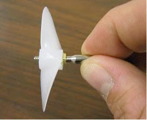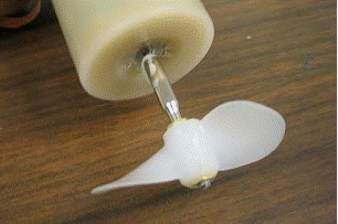 2- لكل أسطوانة نستعمل الأدوات التي تراها في الصورة جانبه: مروحة + ذراع معدني للتوصيل + صمولتين صغيرتين تجعل أحدهما أسفل المروحة والأخرى أعلاها + لصاق. |
