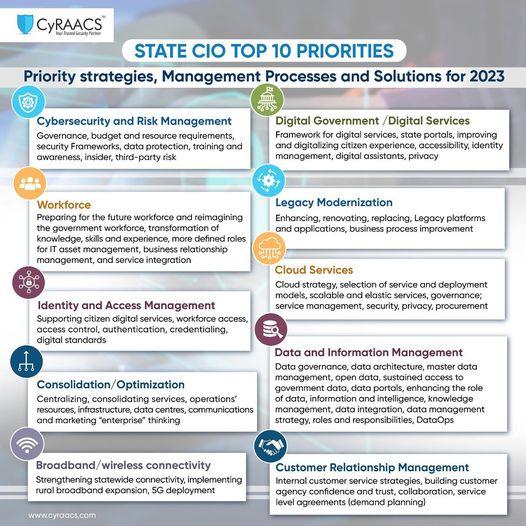 Give the top 10 priorities to be considered by a CIO to build priority strategies, management processes, and solutions in every organization.