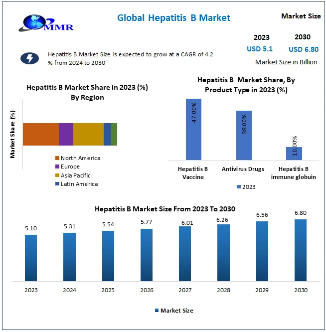 The total global market for the “Hepatitis B Market” was valued at USD 5.1 Billion in 2023 and is expected to grow at a CAGR of 4.2 percent over the forecast period to reach USD 6.80 Billion in 2030. The report analyzed by Maximize Market Research on the Hepatitis B market covers extensive regional analysis and competitive landscape. Key market trends include increasing demand driven by technological advancements, evolving consumer preferences, and rising investments from major players. The industry is expected to experience robust growth as businesses adopt strategic initiatives to improve efficiency and meet the growing demand from various sectors.