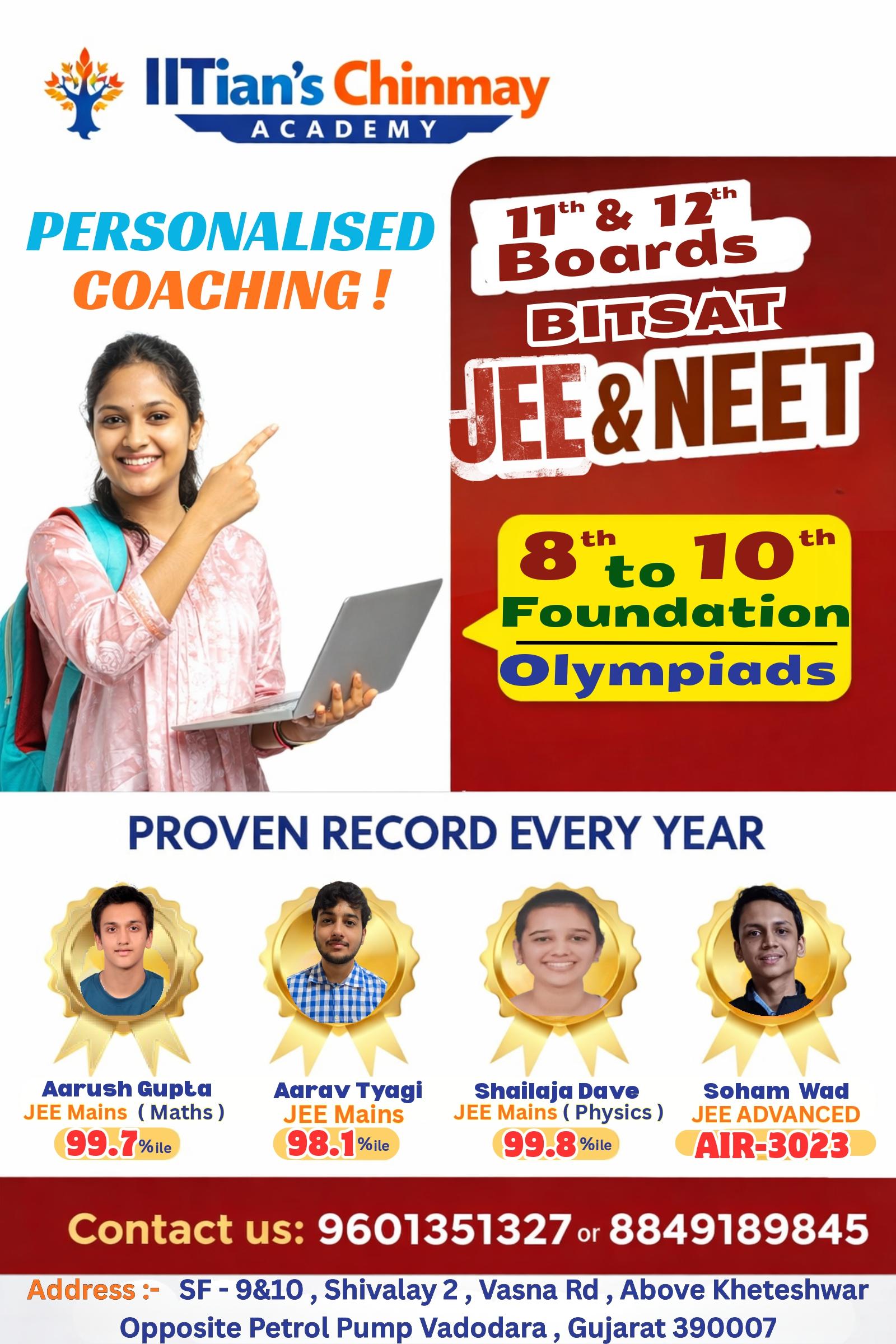 IITians Chinmay Academy is a reputed coaching institute in Vadodara offering expert BITSAT coaching in Vadodara with a strong focus on concept-based learning. The academy specializes in Physics, Chemistry, and Mathematics (PCM), helping students build a strong foundation for competitive exams and board studies.