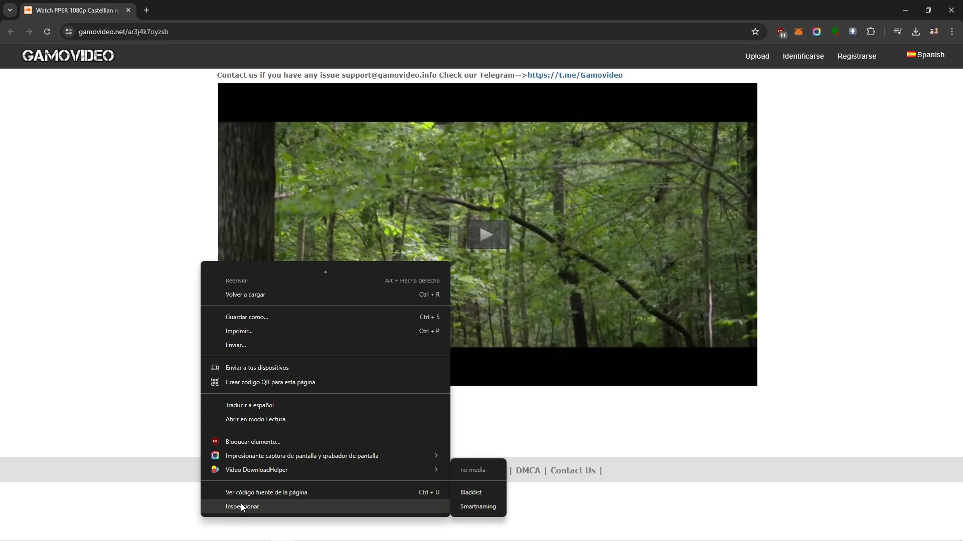 - Una vez dentro del enlace gamovideo le damos clic derecho y inspeccionar como vereis en la siguiente imagen: