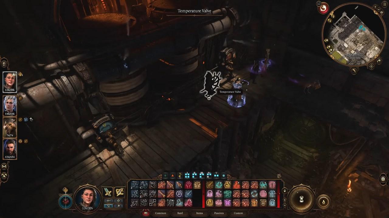Head north from the Sewer Waypoint, but make sure you’ve had a good rest first – there’s more fighting ahead. Must remember to activate Non-lethal combat because you are here to recruit the Minsc not to kill him. You’ll need to mess with some water pressure and temperature valves to solve the riddle to access the Abandoned Cistern where the real battle takes place.