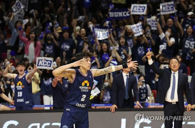 KCC beat KT 96-90 in Game 4 of the 2023-2024 professional basketball championship game (four wins out of seven) held at Busan Sajik Gymnasium on the 3rd to secure its third win (one loss) of the series.