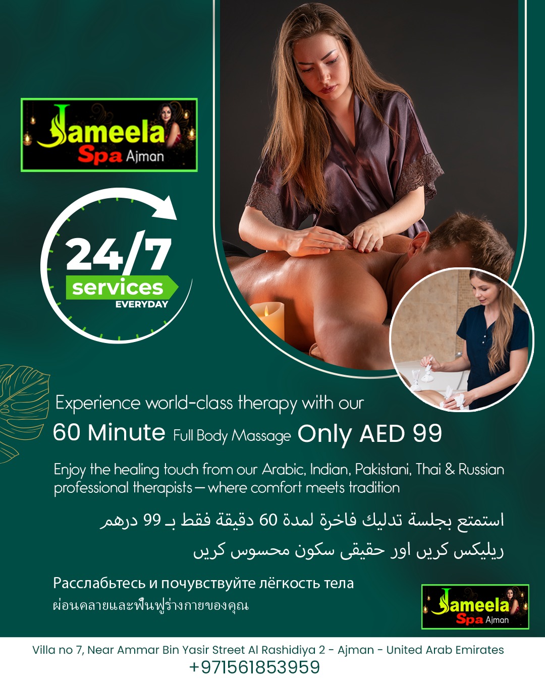 In today’s stressful routine, moments of true comfort are priceless. Jameela Spa Ajman offers those moments consistently—where warm hands soothe tired muscles, calm music relaxes your soul, and peaceful energy surrounds you. Whether you seek relief from tension, emotional relaxation, or simply quiet time for yourself, Jameela is the place that gives both comfort and care. Step inside, breathe deeply, and allow warmth to wash over you. Your mind and body will thank you—and you will leave feeling lighter, calmer, and beautifully renewed.