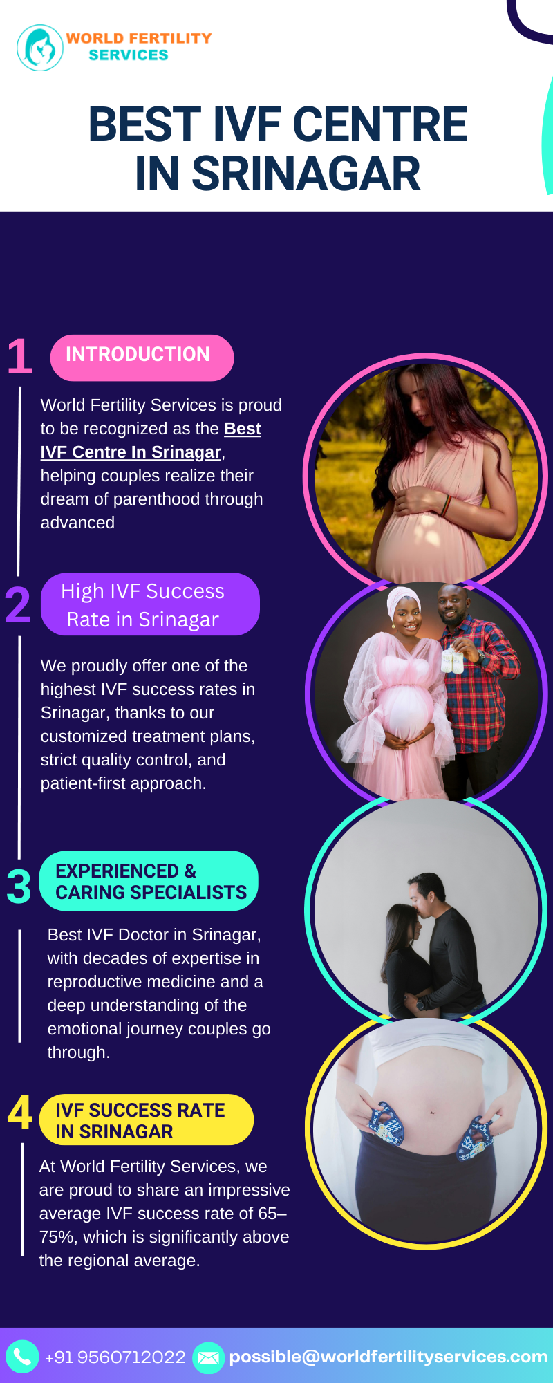 World Fertility Services, which provides the moment fertility treatments with excellent success rates, is acknowledged as the Best IVF Center In Srinagar. Our skilled medical staff offers individualized treatment in a caring setting with the latest technology. We are committed to helping you realize your aspirations of becoming a parent, whether that means using IVF, ICSI, or other fertility treatments. For secure, ethical and reasonably priced fertility treatment in Srinagar, trust World Fertility Services.