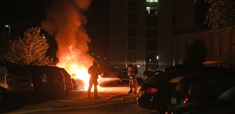 Our action took place in a neighborhood that has been completely transformed in recent years in favor of the new urban elites. The nocturnal crackling of their vehicles is supposed to be part of the disturbing background music of the workers of Züblin, Amazon, DB & Co, when they want to regenerate in their new fancy apartments for another productive working day.