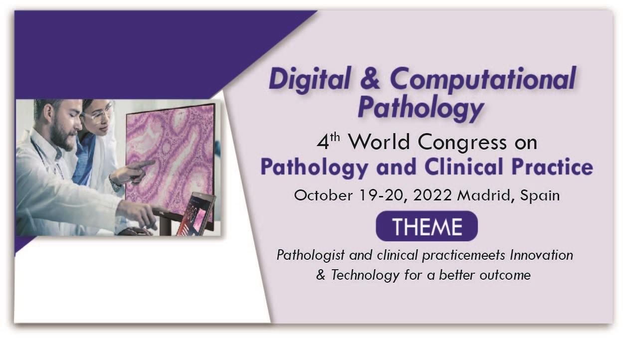 Pathology honors all participants in the 4th World Congress on Pathology & Clinical Practice, which will be held in Madrid, Spain, on October 19–20, 2022. Participants will come from driving colleges, institutes, research foundations, and other relevant individuals. The Clinical Practice scientific program would like to welcome speakers to submit their research for consideration.