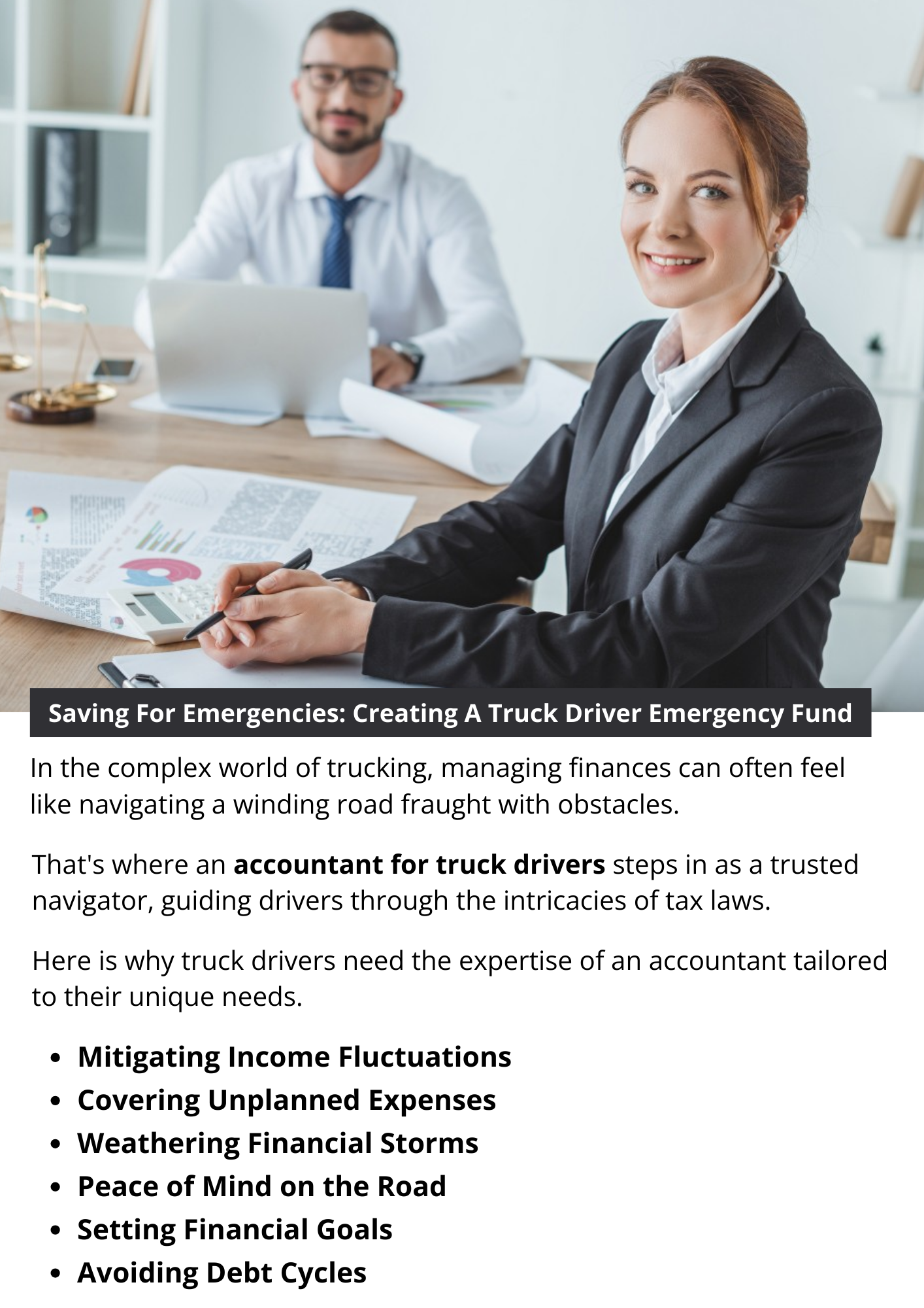 A truck driver emergency fund is not just a financial tool; it is a lifeline that provides security, stability, and peace of mind on the road. By prioritizing savings, building resilience, and proactively preparing for the unexpected, truck drivers can navigate the twists and turns of their journey with confidence and financial security. Start building your emergency fund today and secure your path toward a brighter financial future on the open road. To know more visit here https://www.truckersprocpa.ca/trucking-accounting-services