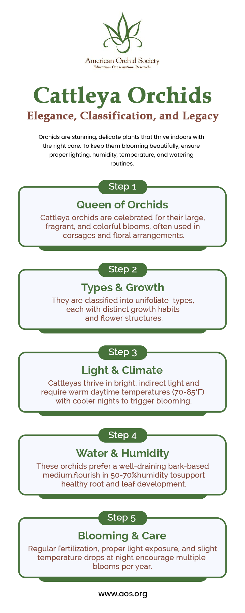 Cattleya Orchids are known for their elegant blooms and vibrant colors. This guide explores their rich history, unique classifications, and lasting legacy in the world of flowers, offering a deeper appreciation for these timeless and stunning botanical wonders. for more info visit at www.aos.org.