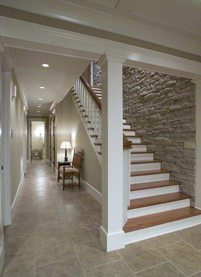 You are on the basement stairs, to the north (upwards) is a lighted landing