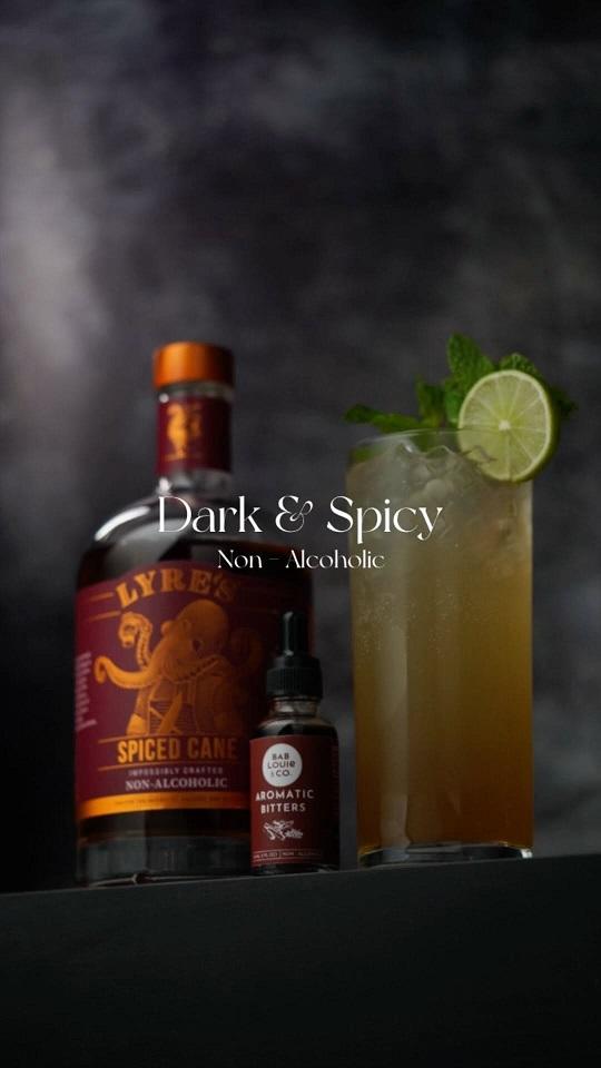 Embrace the dark & spicy side with a mesmerizing dark & spicy mocktail - symphony of flavors featuring @lyresspiritco Spiced Cane, Fresh Lime Juice, Ginger Beer & @bablouieco Aromatic Bitters. Cheers to simple indulgence at home! Recipe below.