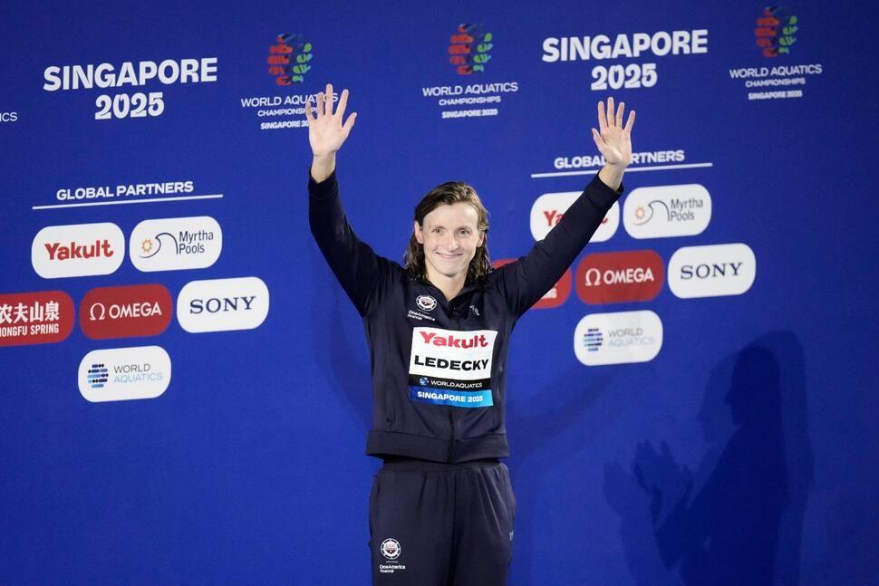 미국인들이 싱가포르 수영 세계 계주에서 릴레이 세계 기록을 세우고 레데키가 다시 우승했습니다