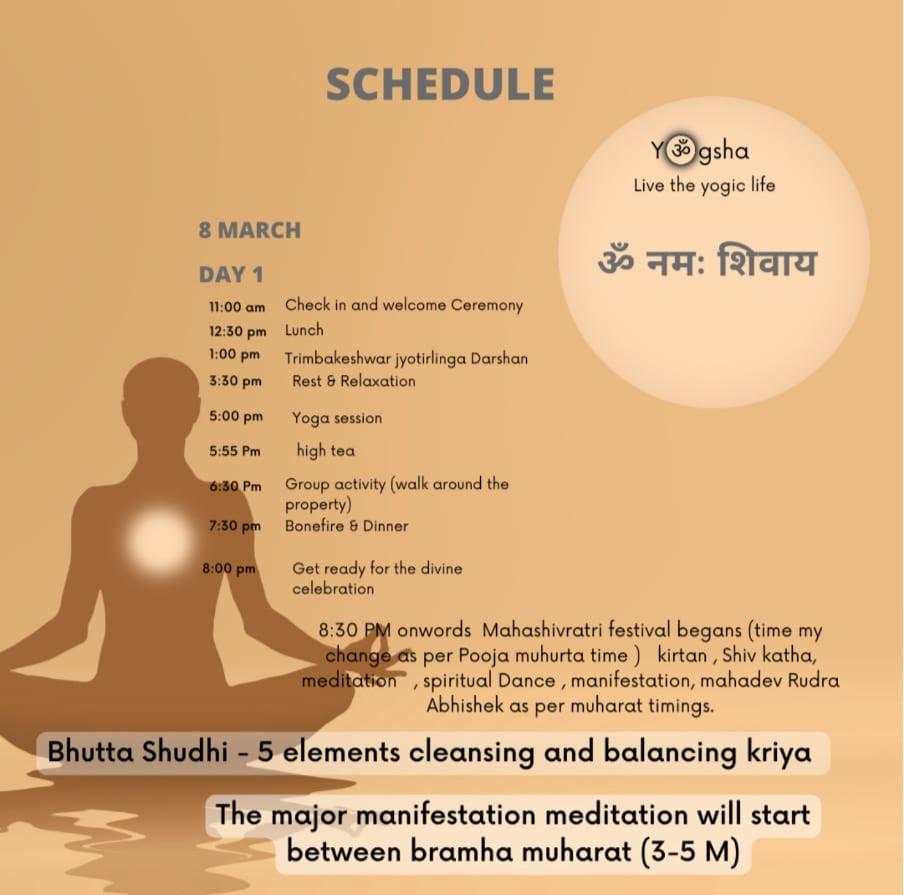 - Yoga Session : Immerse yourself in a series of yoga asanas inspired by the symbolism and energy of Lord Shiva. Experience the grace, strength, and serenity that these poses bring, allowing you to connect with the divine essence within.