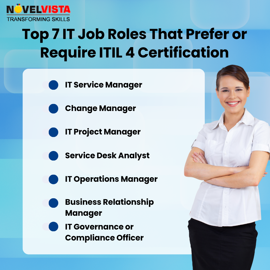 Here are the top seven IT job roles where ITIL 4 certification is either preferred or required: