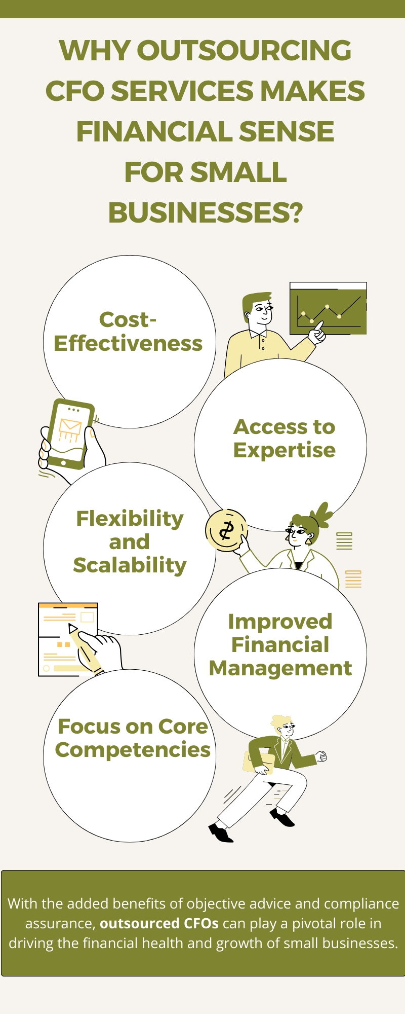 Outsourcing CFO services makes financial sense for small businesses by providing cost-effective access to expertise, flexibility in service delivery, strategic guidance, risk mitigation, and scalability. By leveraging outsourced CFO support, small businesses can enhance financial performance, mitigate risks, and focus on driving long-term success. To know more visit here https://www.straighttalkcpas.com/cfo-services