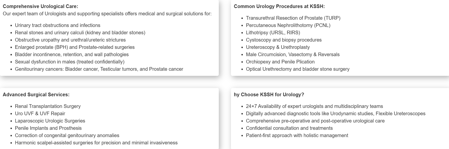 The hospital follows international standards of infection control, safety, and medical protocols, ensuring that every patient receives quality treatment from admission to recovery. Whether it’s a simple urinary infection or a highly complex kidney procedure, the team here ensures personalized care tailored to each patient’s needs.