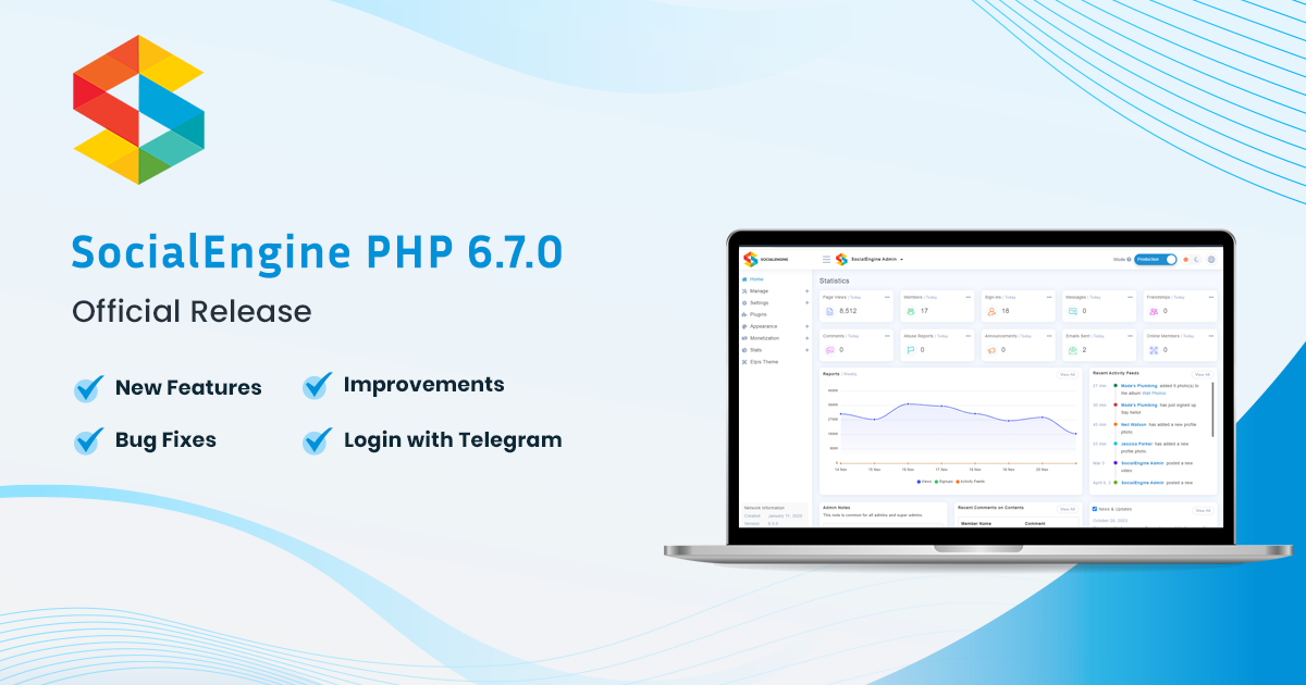 SocialEngine is excited to announce the release of SocialEngine Self-Hosted 6.7.0! This update brings a variety of improvements to your social networking software, including: