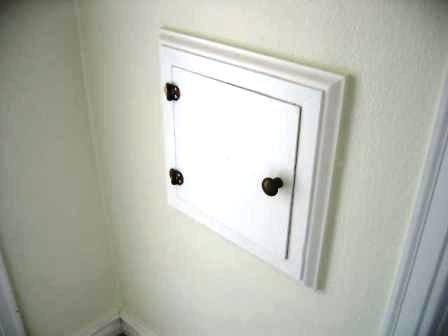 On the wall, you see a small door.