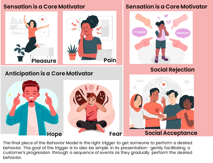 The barriers and triggers to desired user behaviors will vary depending on the business objectives and customer characteristics/personas. Any of the six universal principles of social influence can act as a catalyst to trigger an emotional response.
