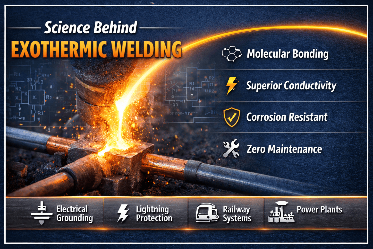 Understanding the Science Behind Exothermic Welding helps engineers, contractors, and electrical professionals appreciate why this technique is considered one of the most reliable methods for permanent electrical connections. Exothermic welding is widely used in grounding, bonding, lightning protection, and power distribution systems due to its unmatched durability and conductivity.