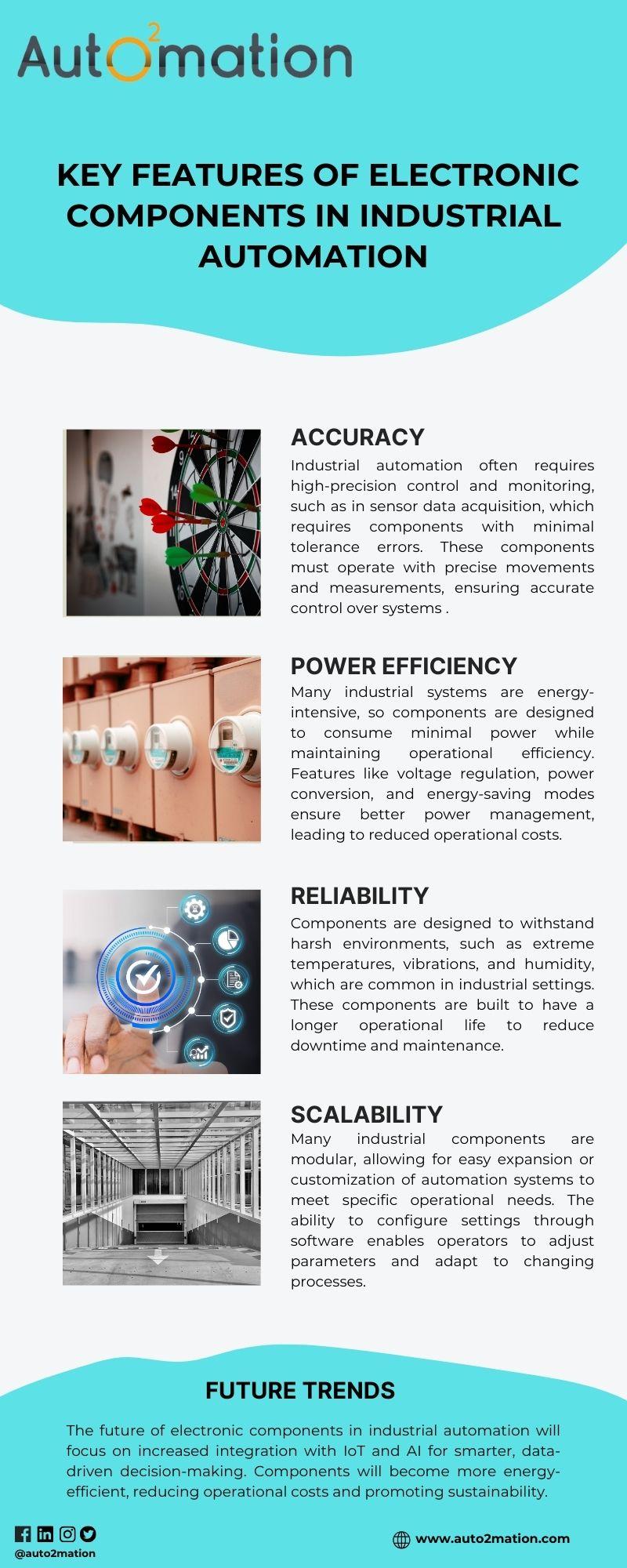 Electronic components in industrial automation are essential for improving efficiency, reliability, and safety in manufacturing processes. These components, such as sensors, PLCs, and actuators, are built to withstand harsh environments while offering high precision and energy efficiency. They support advanced communication protocols, enabling seamless integration with IoT and AI technologies for real-time monitoring and control. With features like overload protection and modular designs, they ensure smooth operations and safety. As automation continues to evolve, the future will see smarter, more energy-efficient components designed for enhanced performance, sustainability, and cost-effectiveness in industrial settings.