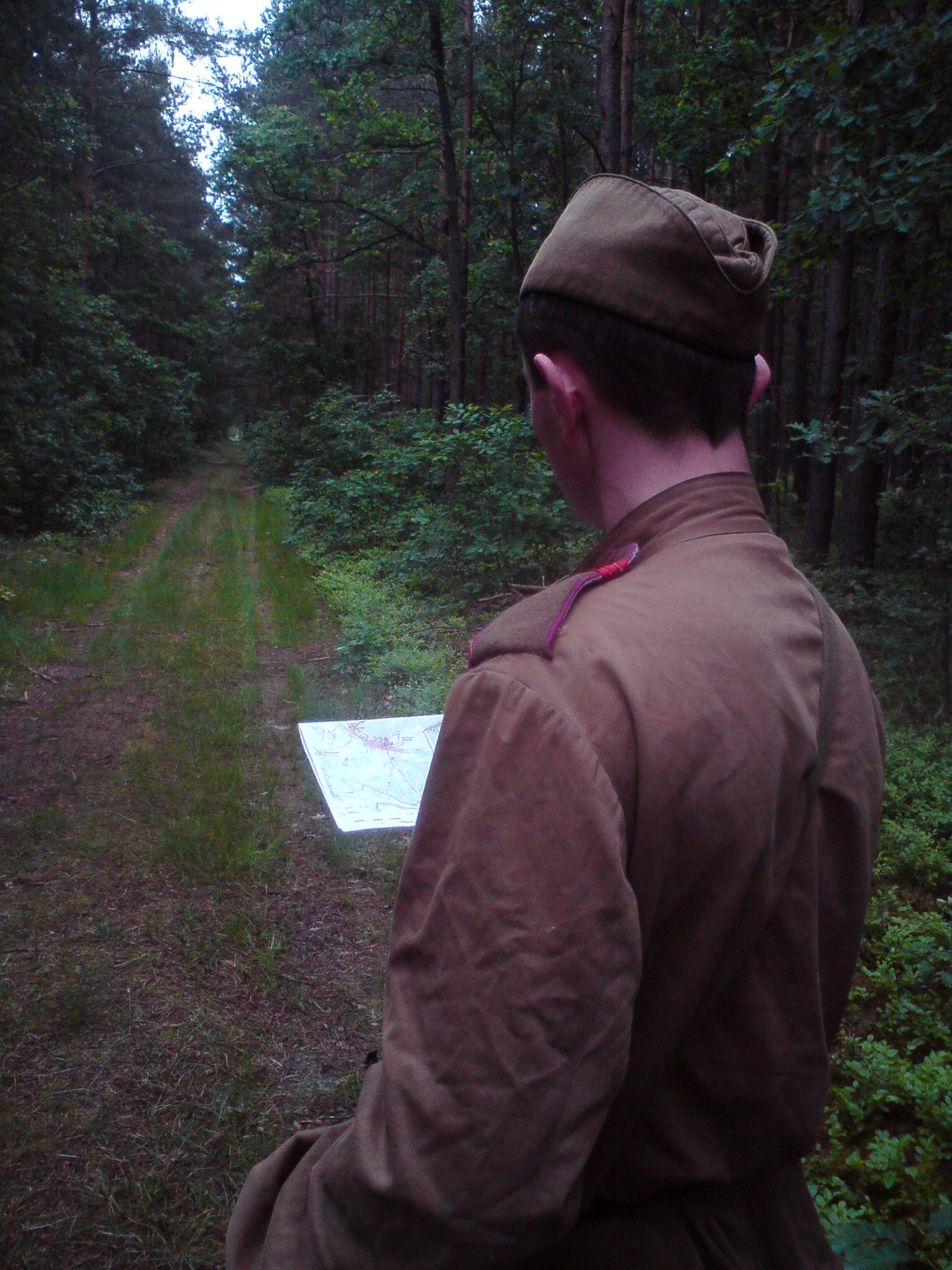 Punkt w postaci bunkra obsadziliśmy ok. godziny 13.00. Po ogarnięciu miejsca i nazbieraniu opału przyszedł czas na rozpoznanie taktyczne terenu. Ustaliliśmy możliwe kierunki marszu tropicieli oraz znaleźliśmy dobre miejsce na punkt obserwacyjny którego celem było powiadomienie, za pomocą telefonów polowych, głównej bazy o zbliżaniu się grupy, samo miejsce miało być zamaskowane by nikt go nie odkrył. Chcieliśmy oprócz obsługiwania grup również przy okazji poćwiczyć działania w terenie. Na ten cel został oddelegowany dwuosobowy oddział zwiadu wyposażony w kombinezony maskujące i pistolety maszynowe PPS-43, stanowiące w latach 1943-1945 ulubioną broń zwiadowców ze względu na małą masę oraz prostą i niezawodną konstrukcję.