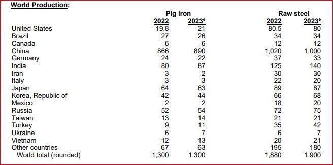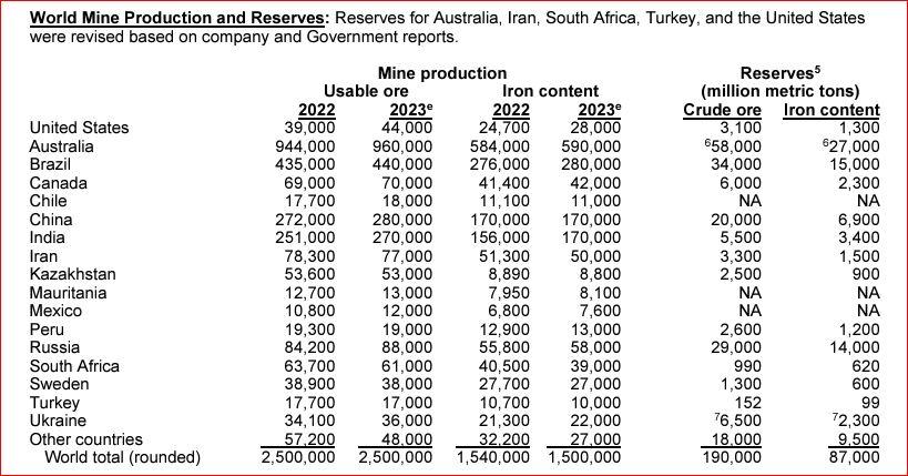 Le Brésil et l'Australie sont les premiers producteurs de minerai de fer du monde. Sans oublier la Mauritanie SNIM ex Miferma .