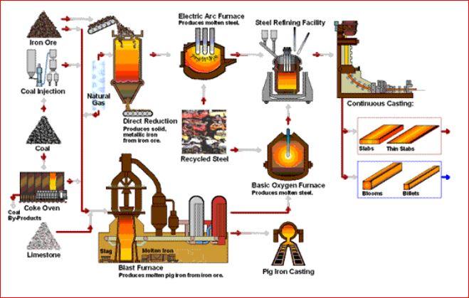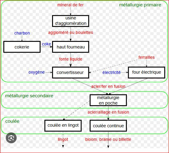 Ce schéma illustre l'ensemble des procédés de production d'acier.