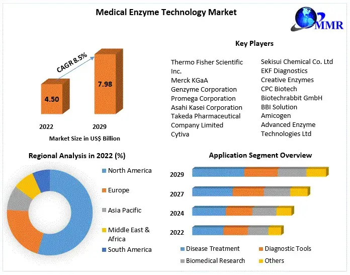 Medical Enzyme Technology Market is expected to reach US$ 7.98 Bn. at a CAGR of 8.5% during the forecast period 2029.