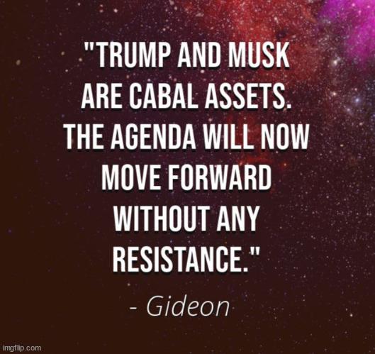 Gideon: “Trump winning had nothing to do with any kind of setback for the cabal, quite the contrary. There is a deep thread of evil between Trump, Musk and those surrounding him, something evident if you observe very carefully. In no way is Donald Trump a Christian as he presents. While the media attacks against him are generally false, and the reason the Left hates him are generally baseless, that is irrelevant as to the truth of the man, and the truth is that he is compromised.”