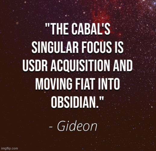 Gideon: "Bitcoin is the main conduit for the cabal's USDR aquisition, so it is going up because Billions of fiat dollars are being poured into it. The cabal's singular focus is USDR aquisition and moving fiat into Obsidian.