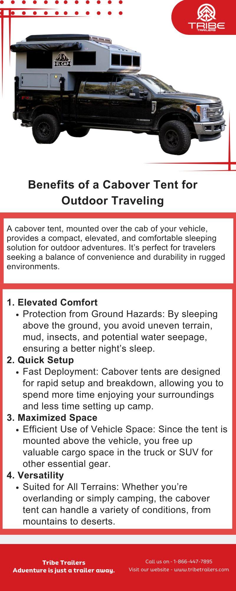 A cabover tent, mounted over the cab of your vehicle, provides a compact, elevated, and comfortable sleeping solution for outdoor adventures. It’s perfect for travelers seeking a balance of convenience and durability in rugged environments. For more information visit https://tribetrailers.com/