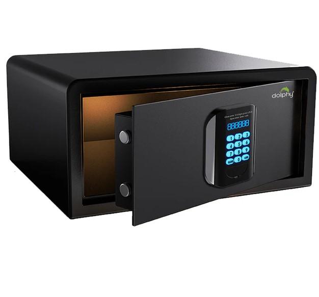 Equipped with a digital keypad and LED display, the safe allows fast and secure access using a personal passcode. Its auto door function provides smooth operation, while the interior LED lighting ensures visibility even in low-light conditions. A freeze security system locks the unit after three incorrect attempts, adding an extra layer of protection.
