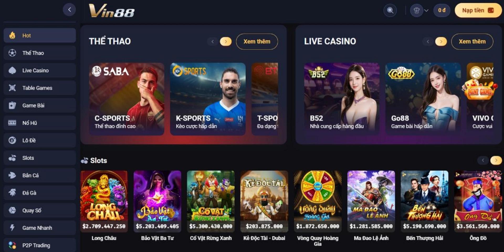 Trang chủ Vin88 mang đến cho người chơi các sảnh game thể thao, casino và slot game đa dạng. Đừng bỏ lỡ cơ hội nhận thưởng lớn từ Vin88.com, nơi cá cược luôn an toàn và bảo mật!