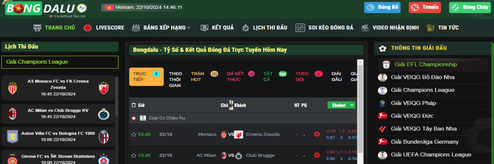Tỷ số bongdalu cung cấp nhiều hơn 1500 giải đấu về tỷ số bóng đá và kết quả trực tuyến, lịch thi đấu, live tv và chuyên gia nhận định bóng đá...