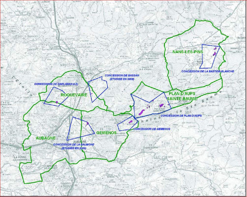 Concessions Gémenos, Plan d'Aups et Nans les Pins Source Geoderis.