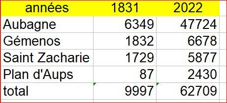 Les populations respectives de ces communes en 1831 et 2022: