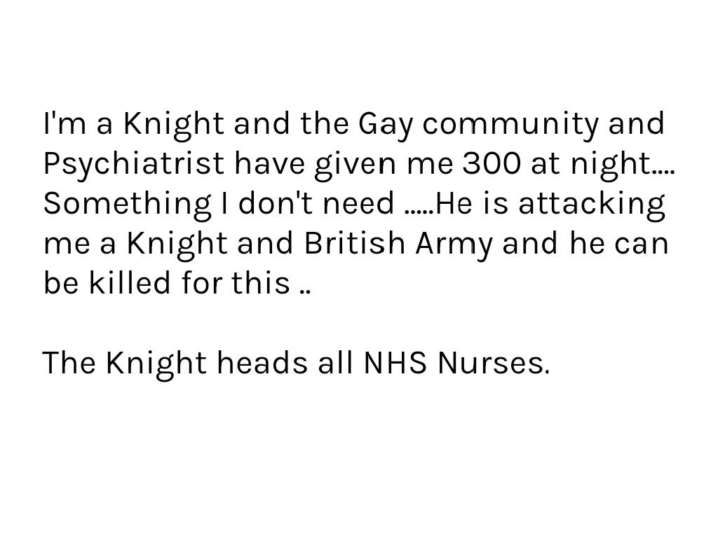 I need NHS Mental Health Nurses to get that criminal Doctor and Section him and I'm going to prescribe him 800 MLS of Dipixal injection.