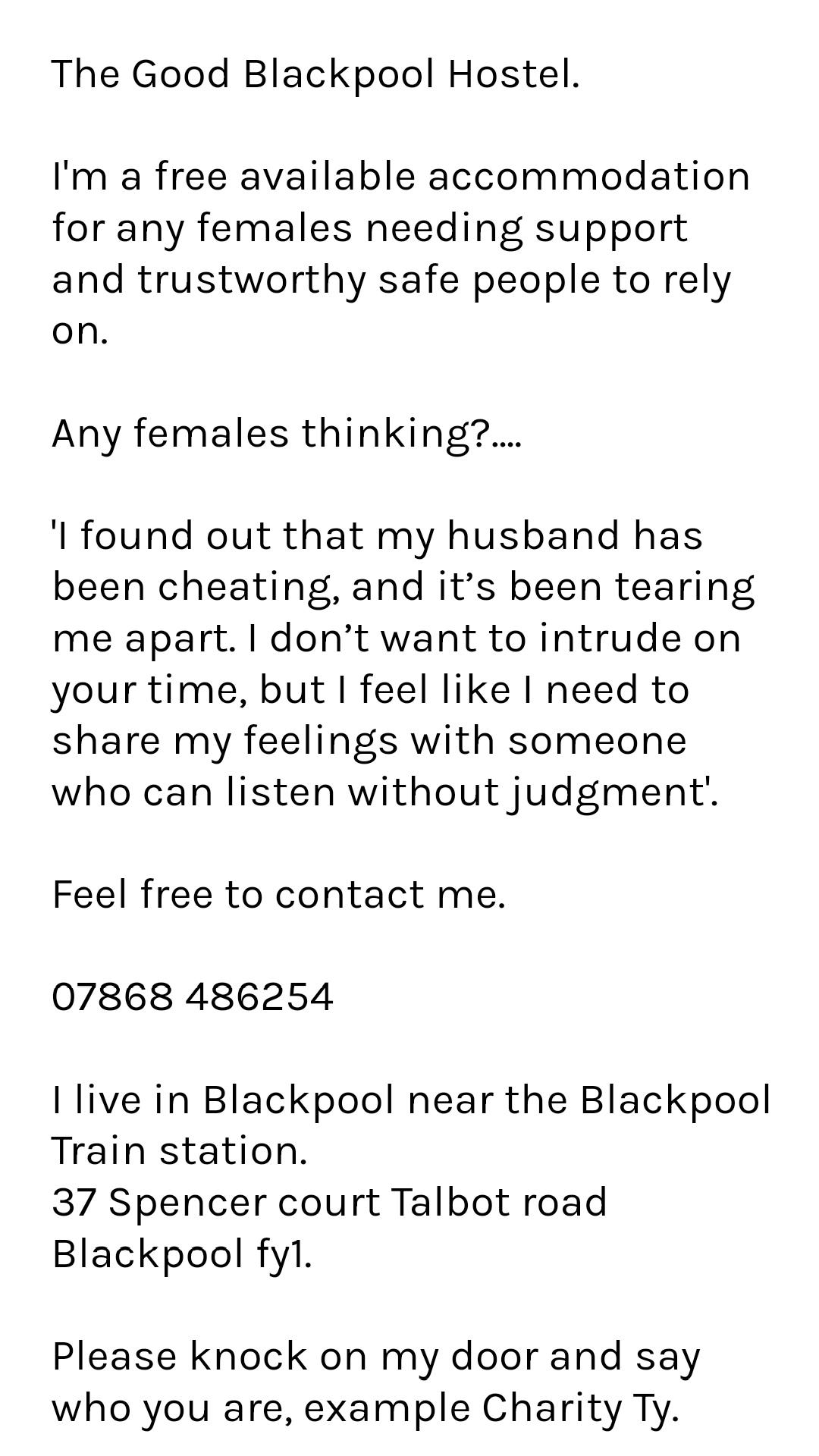 37 Spencer Court Talbot road Blackpool fy1 near the Blackpool Train station.