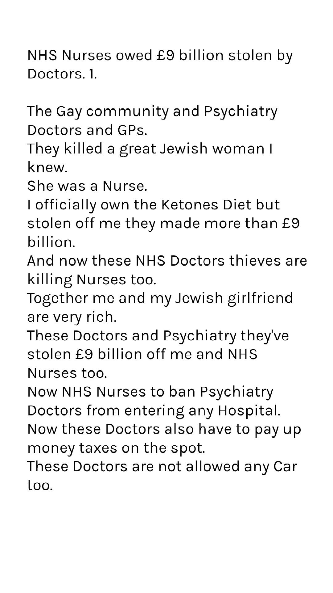 I'm a head Psychiatrist and I'm married to NHS Nurse Jo too.