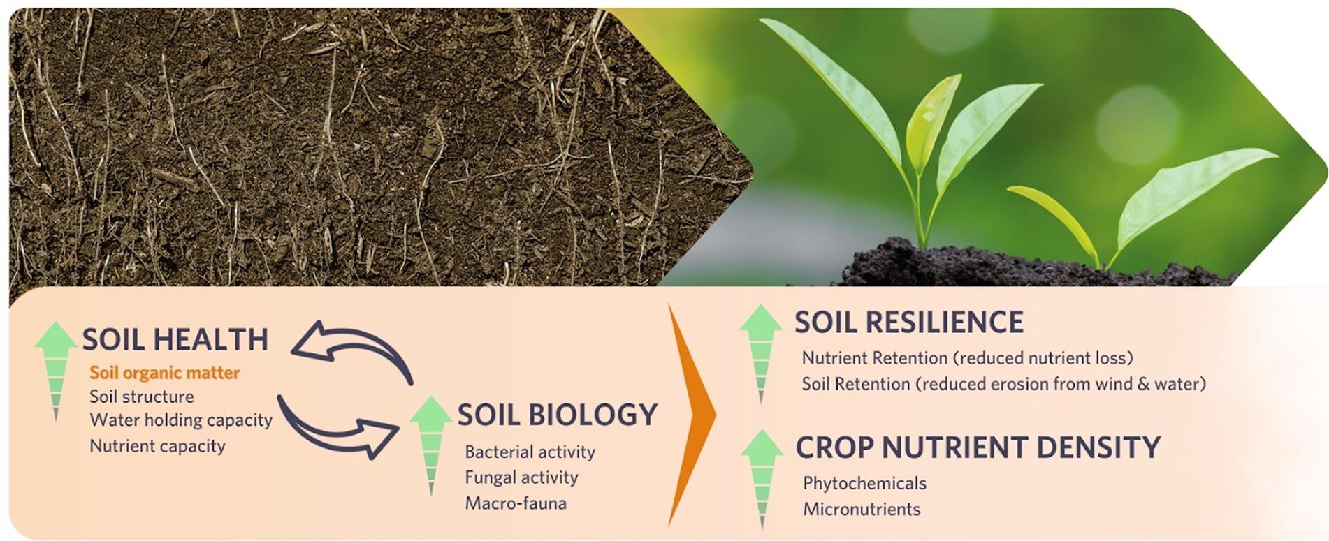 Over time, improved structure also reduces runoff and erosion, protecting valuable topsoil.