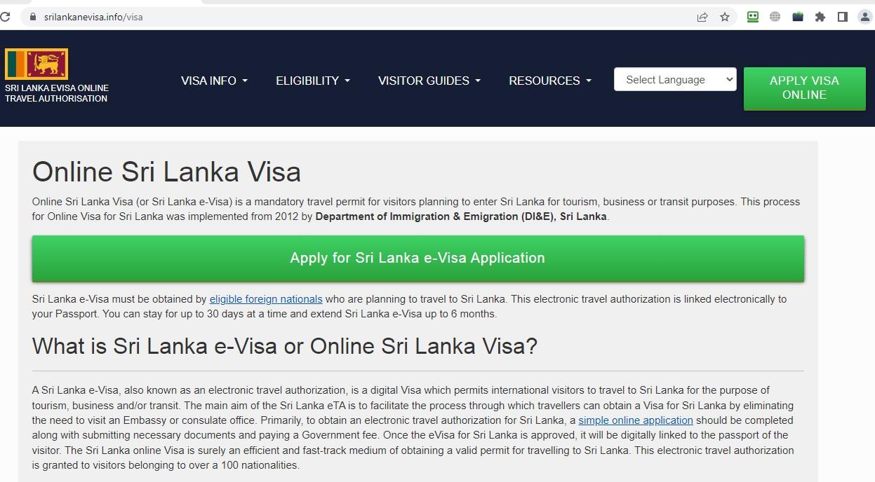 في عام 2025، أطلقت حكومة سريلانكا نظامًا إلكترونيًا جديدًا عبر الإنترنت للزوار. الآن لست مضطرًا لزيارة سفارة سريلانكا أو الحصول على ملصق على جواز سفرك. أصبحت العديد من البلدان الآن مؤهلة لعملية التأشيرة الإلكترونية وعبر الإنترنت لسريلانكا. يجب أن يكون لديك معرف بريد إلكتروني وأن تكون قادرًا على الدفع ببطاقة الخصم أو الائتمان عبر الإنترنت. يجب أن تعرف تفاصيل جواز سفرك من صفحة بيانات جواز السفر. تفويض السفر الإلكتروني أو التأشيرة الإلكترونية لسريلانكا هي مبادرة هجرة لزيارة قصيرة إلى سريلانكا ويتم إرسالها إلى بريدك الإلكتروني. هذه طريقة مبسطة وموثوقة وفعالة للغاية بدلاً من زيارة سفارة سريلانكا للحصول على ختم على جواز السفر. يتم إصدار تأشيرة سريلانكا عبر الإنترنت عبر البريد الإلكتروني. لست بحاجة إلى إرسال أي نسخ من جواز السفر أو إرسال أي مستندات أو صور. بمجرد حصولك على بريد إلكتروني، انتقل إلى المطار، ولا يلزم ختم أو تأييد على جواز السفر. In 2025 Sri Lankan Government has launched a new online electronic system for visitors. Now you do not have to visit Sri Lankan embassy or get sticker on your psssport. Many countries are now eligible for the electronic and online visa process for Sri Lanka. You must have an email id and be able to pay by debit or credit card online. You should know your passport details from the passport biodata page. Electronic Travel Authorization or eVisa for Sri Lanka is an Immigration initiative for Short Visit to Sri Lanka and this is sent to your email. This is a very simplied, reliable and efficient method rather than visiting the Sri Lankan Embassy to get stamp on the passport. The Online Sri Lankan Visa is issued by email. You do not need to send any passport copies or couried any documents or photographs. Once you have email, go to the Airport, no stamp or endorsement on the passport is required.